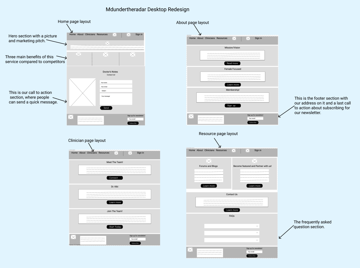 To gain additional clarity for the redesign of the website “MD under the radar” with intuitive user experience and user retention as the objective. I performed Heuristic evaluation and competitive analysis.