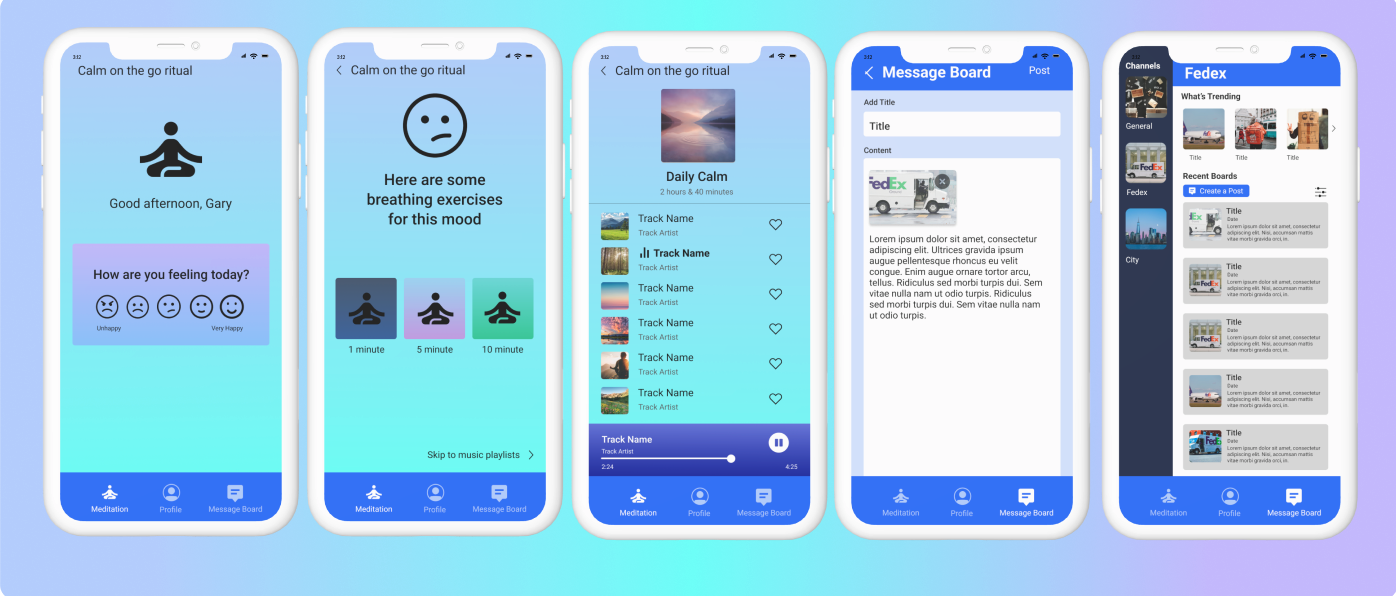 Our solution was to design a simple and intuitive mobile app to help users cope with holiday season work stress and build community.